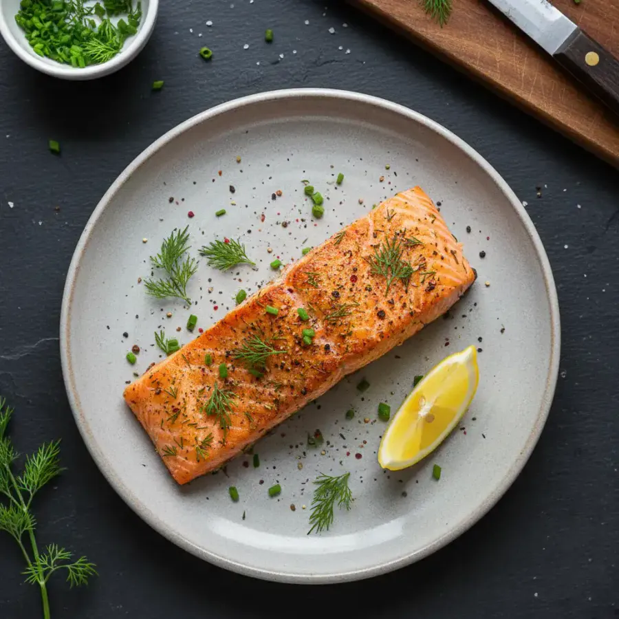 Malse laag FODMAP airfryer zalm met perfect krokante randjes in slechts 12 minuten. Restaurantkwaliteit vis makkelijk thuis gemaakt op elke doordeweekse avond.