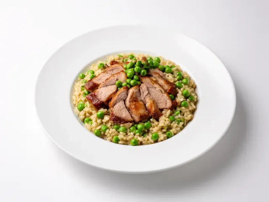 Laag FODMAP Aziatische Eend en Erwten Risotto